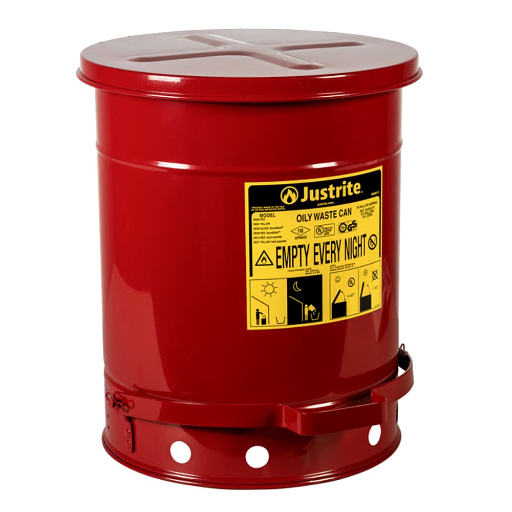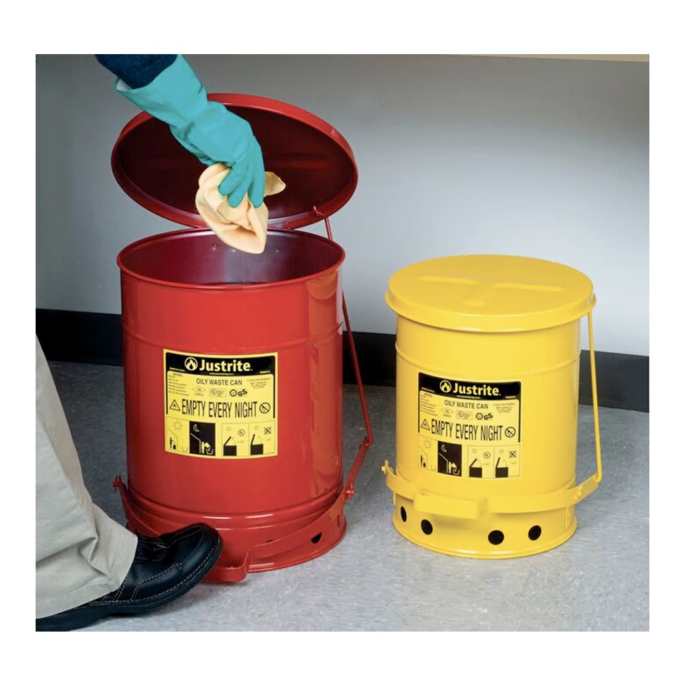 US OSHA uyumlu Atık Kovaları solvent ya da yağ bulaşmış bez, kırpıntı, üstüpü veya peçete gibi malzemelerin bertarafı için gereklidir. Solvent, tiner, yapıştırıcı, yağ, boya gibi yanıcı sıvılar, doğru olmayan şekilde atıldığında ciddi bir yangın riski oluştururlar.