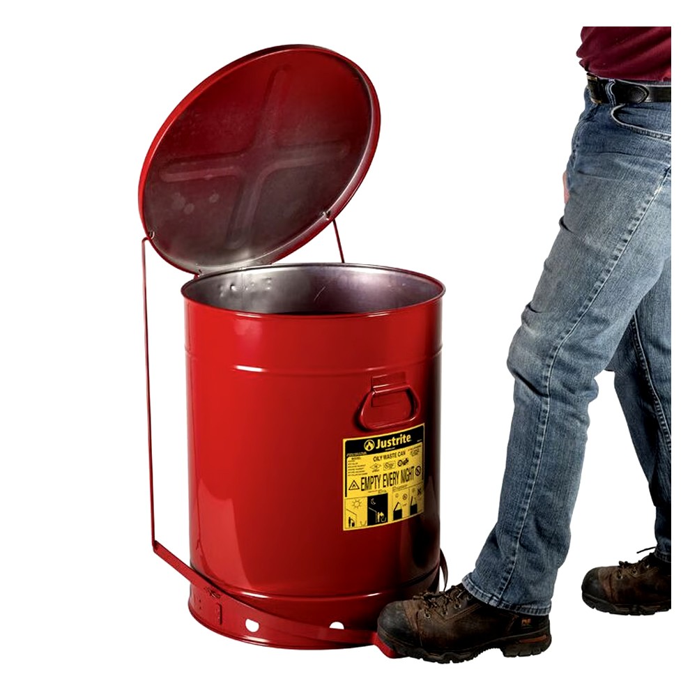 US OSHA uyumlu Atık Kovaları solvent ya da yağ bulaşmış bez, kırpıntı, üstüpü veya peçete gibi malzemelerin bertarafı için gereklidir. Solvent, tiner, yapıştırıcı, yağ, boya gibi yanıcı sıvılar, doğru olmayan şekilde atıldığında ciddi bir yangın riski oluştururlar.