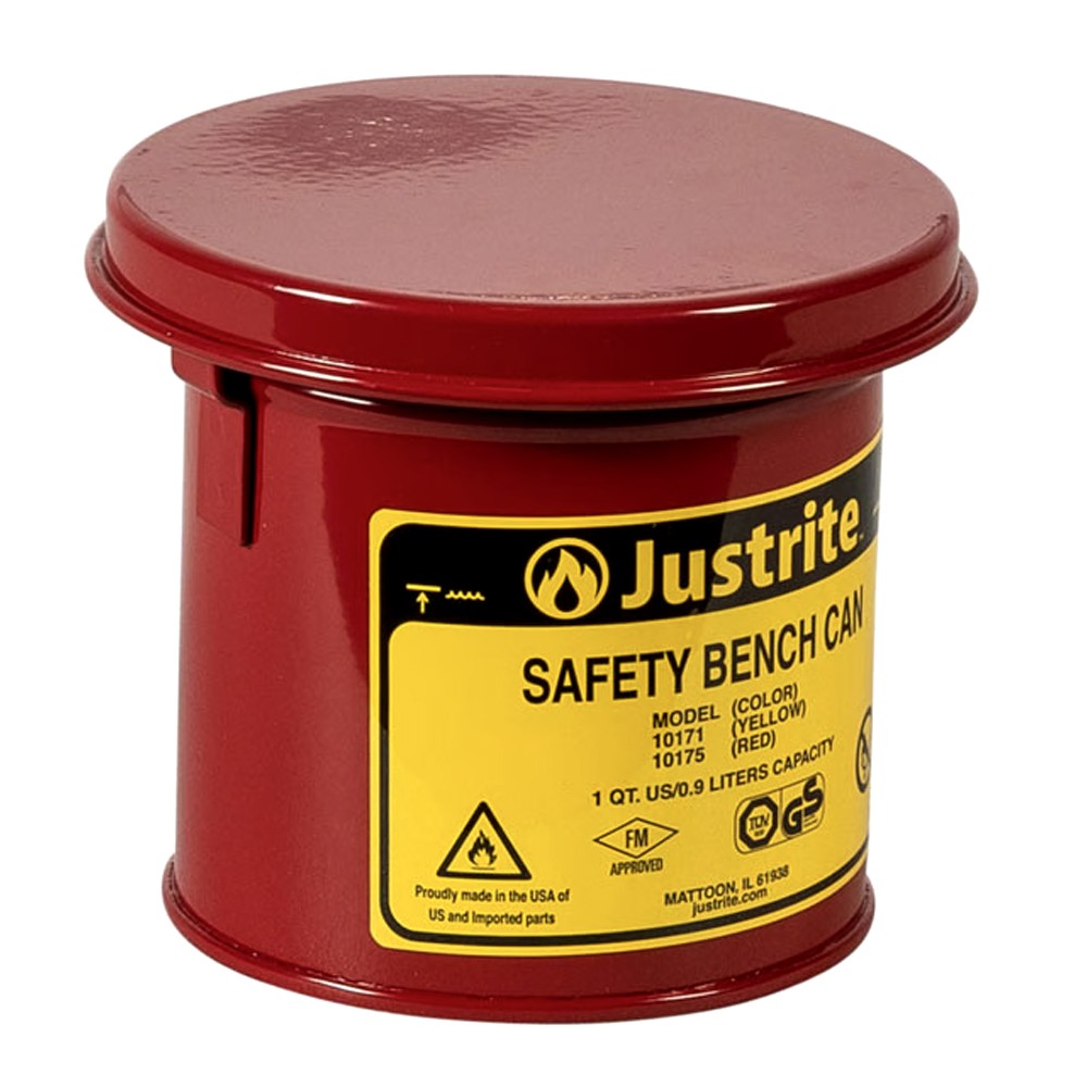 Justrite Tezgâh Üstü Kaplar küçük parçaların solventle temizliğinde kullanılır. Üstteki delikli tabla yay desteklidir ve bastırıldığında bütün olarak sıvının içine girer. Bırakıldığında eski pozisyonunu alır. Çelik kaplama tabla aynı zamanda etkin bir alev tutucu görevi görür. Yuvarlatılmış kenarlı kapak ile de hem buharlaşma önlenir hem de el yaralanması olasılığı azaltılır.