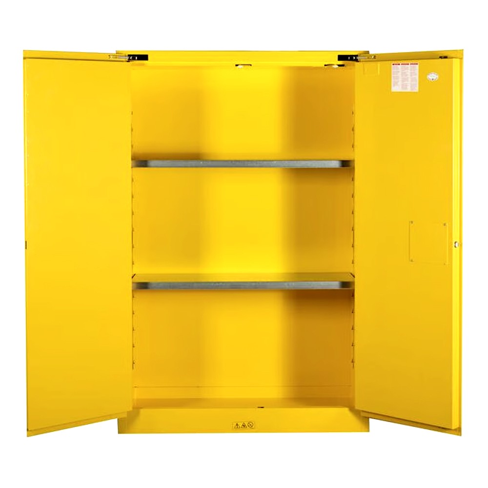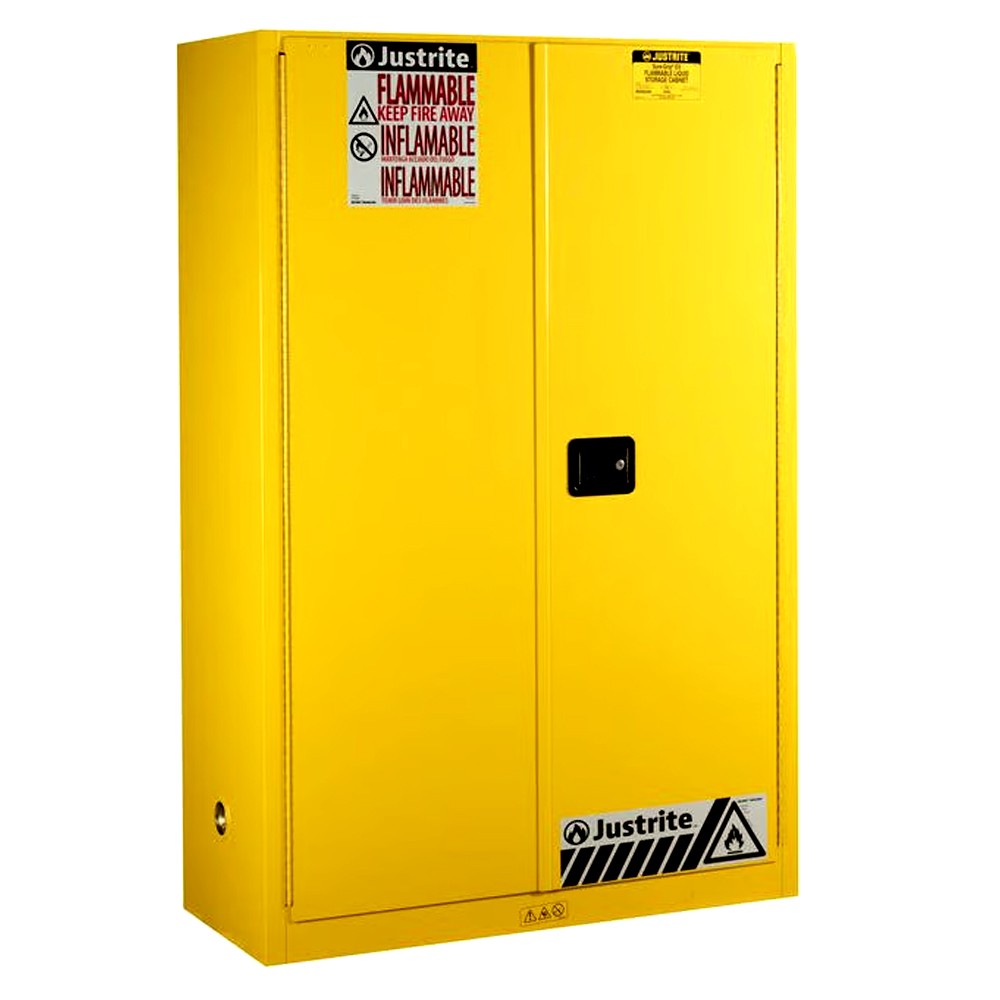 Yasalara uyumlu bir şekilde tehlikeli sıvıları depolayan Emniyetli Dolaplar işçileri korur, yangın riskini azaltır ve verimliliği artırır. US OSHA ve NFPA standartlarına uygun Justrite dolapları yangın direnci için arada 38 mm hava boşluğu olan kaynaklanmış çelikten 1mm’ lik dayanıklı çift duvara sahiptir.