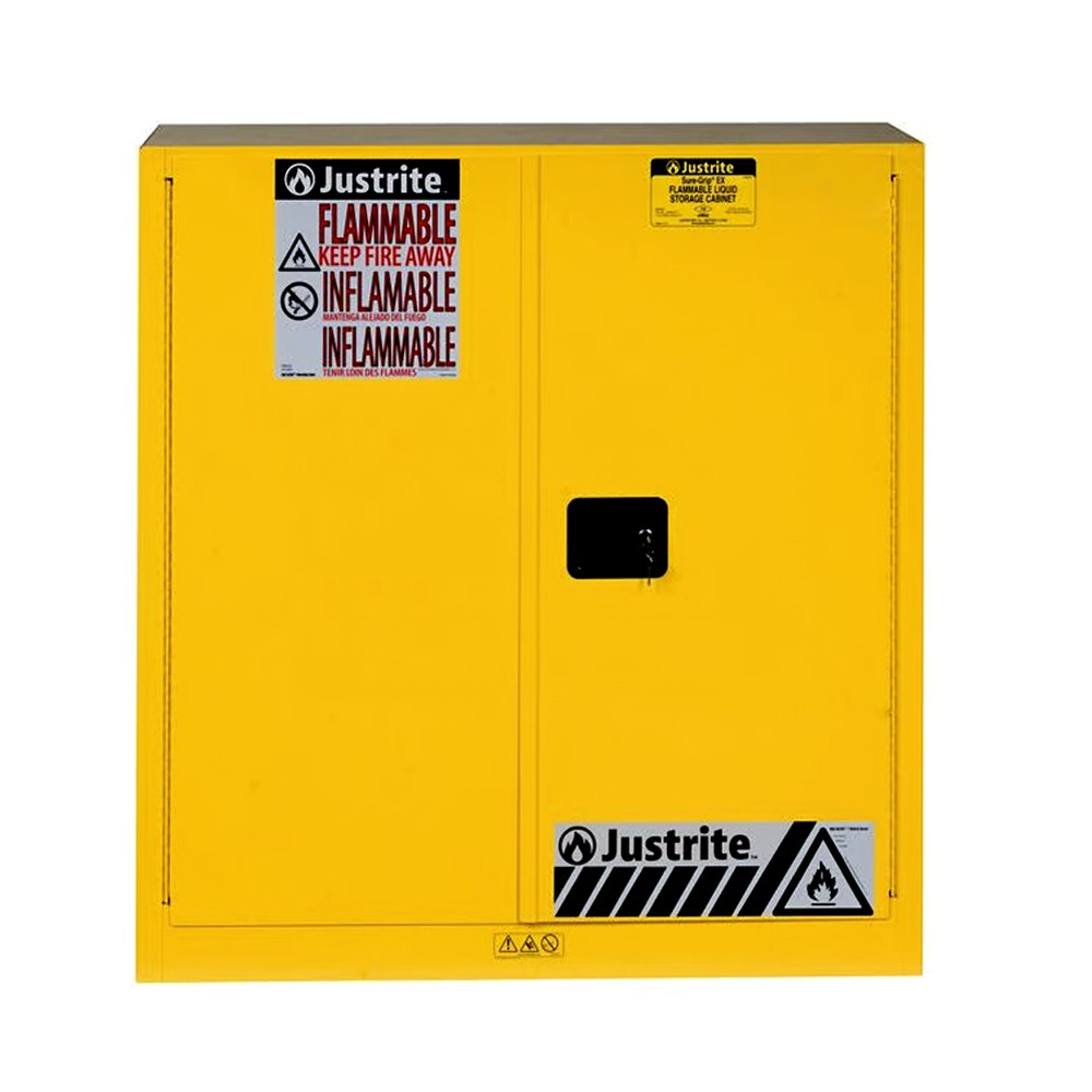 Yasalara uyumlu bir şekilde tehlikeli sıvıları depolayan Emniyetli Dolaplar işçileri korur, yangın riskini azaltır ve verimliliği artırır. US OSHA ve NFPA standartlarına uygun Justrite dolapları yangın direnci için arada 38 mm hava boşluğu olan kaynaklanmış çelikten 1mm’ lik dayanıklı çift duvara sahiptir.