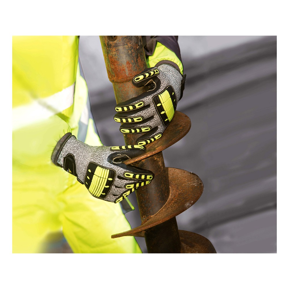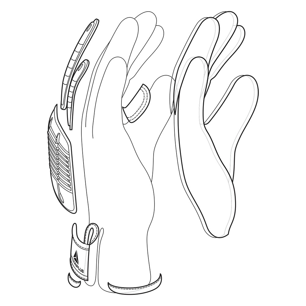 Destek : Örme - Aramid - PEHD | Kaplama : Çift katmanlı nitril - Avuç içi kaplama | Takviye Kuvvetler : Avuç içi - Parmakların arkası - Başparmak - Baş parmak-İşaret parmağı kıvrımı - Arka | Cırt cırtlı manşet