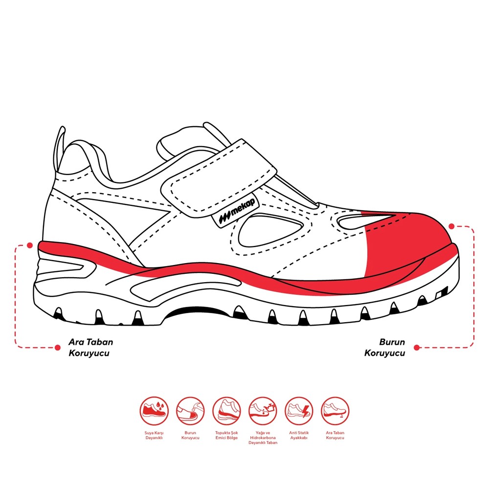 Mekap Jupiter 157-01, S1P standartlarına uygun, çelik burunlu ve kaymaya karşı dirençli bir iş ayakkabısıdır. Bu ayakkabı, hafif yapısı ve çelik burunu ile iş güvenliği sağlarken, SRC sertifikasına sahip olması da kaymaya karşı yüksek düzeyde direnç sunar. Jupiter 157-01, çeşitli endüstriyel ortamlarda güvenli ve konforlu bir kullanım için tasarlanmıştır.