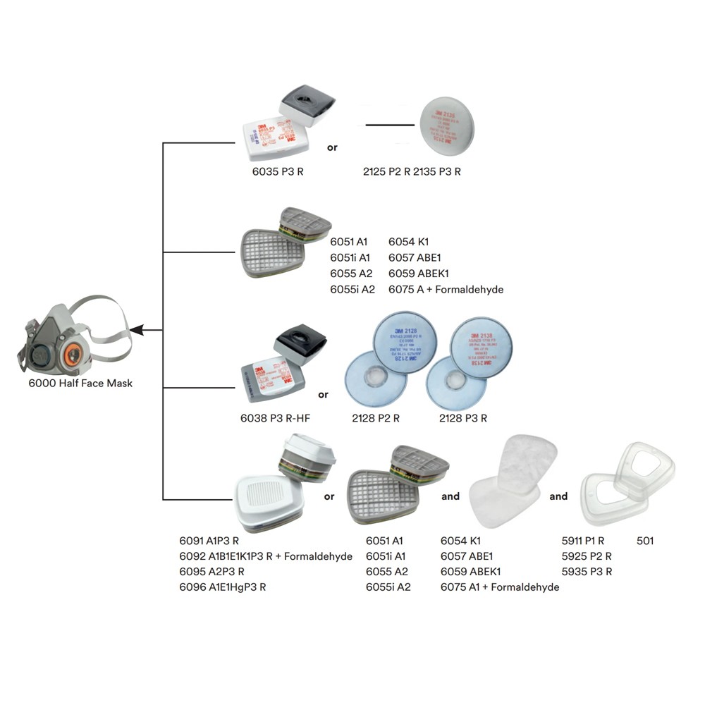 • 3M™ Gaz ve Buhar Filtreleri 6000 Serisi veya 3M™ Filtre Adaptörü 603 ile birlikte kullanın